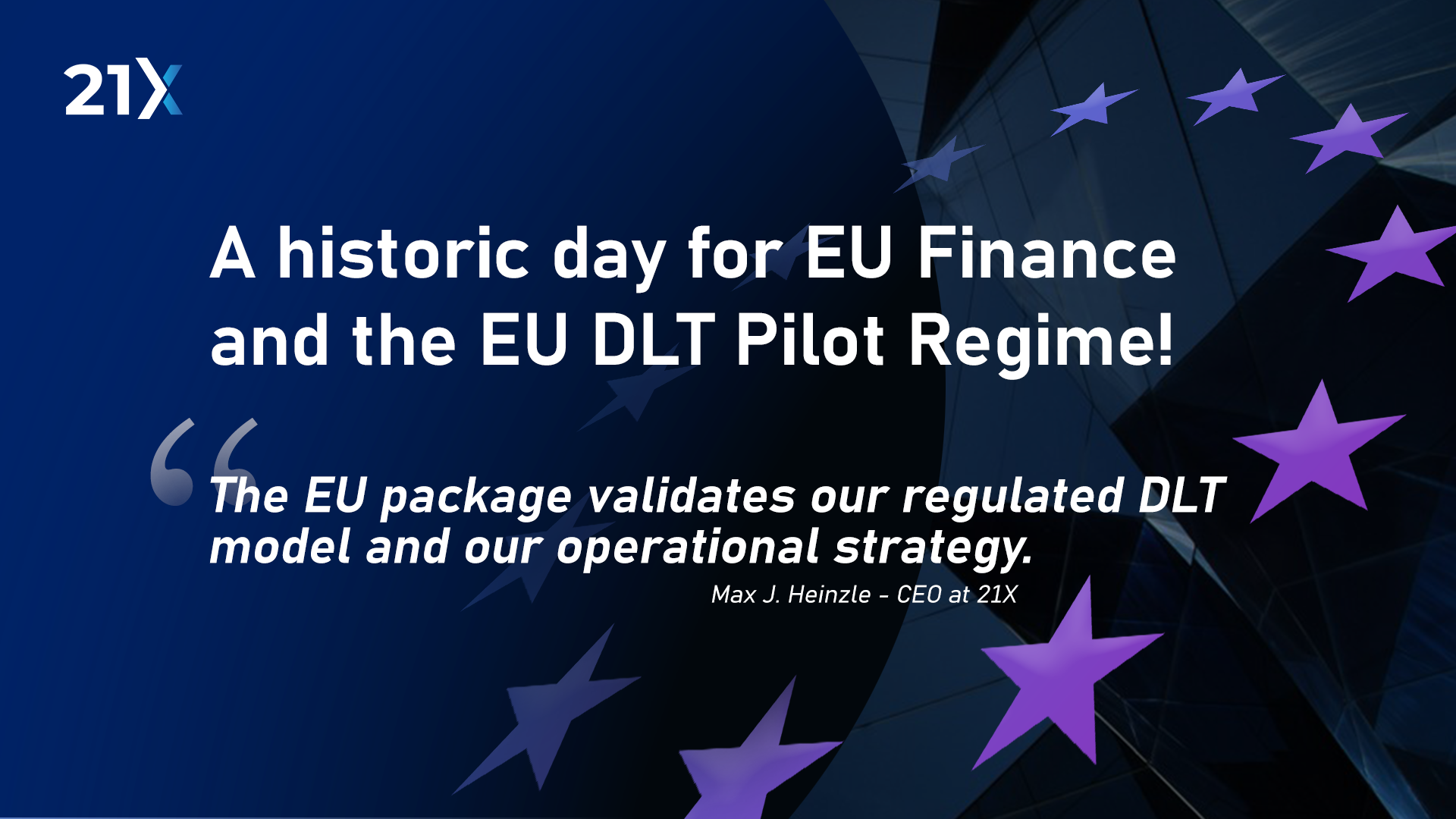“The European Commission’s package is a resounding validation of the regulated DLT model and our operational strategy. The proposed amendments to the DLT Pilot Regime—including the removal of limitations and increased flexibility—directly address the core issues 21X has identified as the first DLT TSS authorized under the regime and following our announcement of entry.
