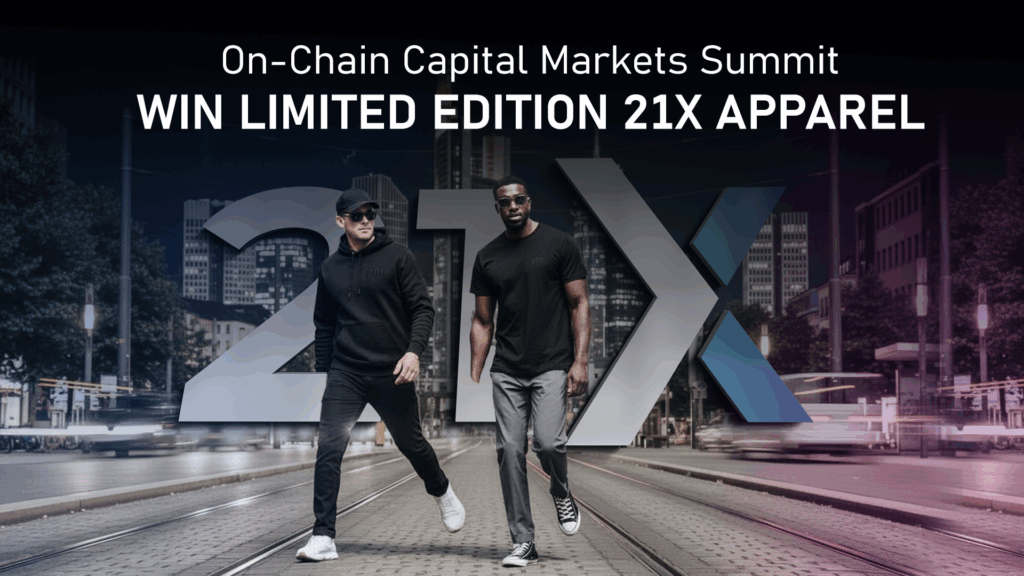 To celebrate our Inaugural On-Chain Capital Markets Summit on October 1 at the Neue Oper Frankfurt, we’re giving away exclusive 21X merchandise! 🎁 Prizes:1st place: 21X Hoodie2nd place: 21X T-Shirt3rd place: 21X Cap How to enter:1️⃣ Like & share this post2️⃣ Leave a comment telling us what you find most exciting about Blockchain and On-Chain […]