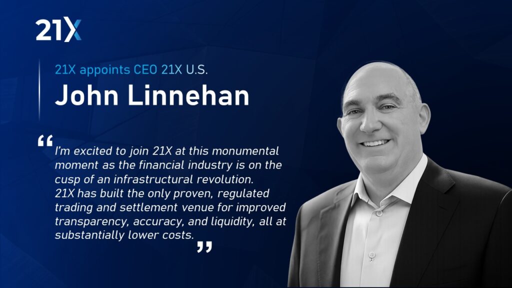 21X announces John Linnehan as the CEO of the 21X U.S. entity to bring world’s first fully regulated on-chain trading and settlement system for digital securities to America
